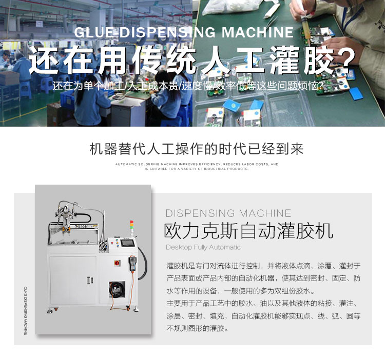 机器配有固定治具,治具把产品放置在治具,黄色网站免费看片就可以进行自动灌胶,可以选择51免费看片OL-G4600,4头自动灌胶,避免了生产效率过低,又没有多大强度的工作,保证厂家在低成本情况,高效率完成灌胶任务,客户看到机器视频,也很快确定选购一款机器,测试和打样均是满意的。