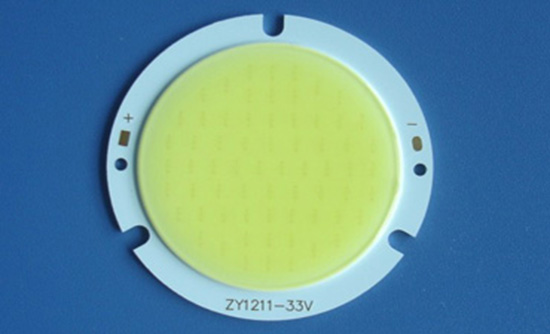 蓝光芯激发黄色荧光粉,使LED散发出白色光源。